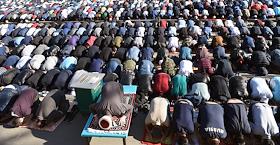Мусульманский праздник Ураза-Байрам. Верующие перед началом намаза.