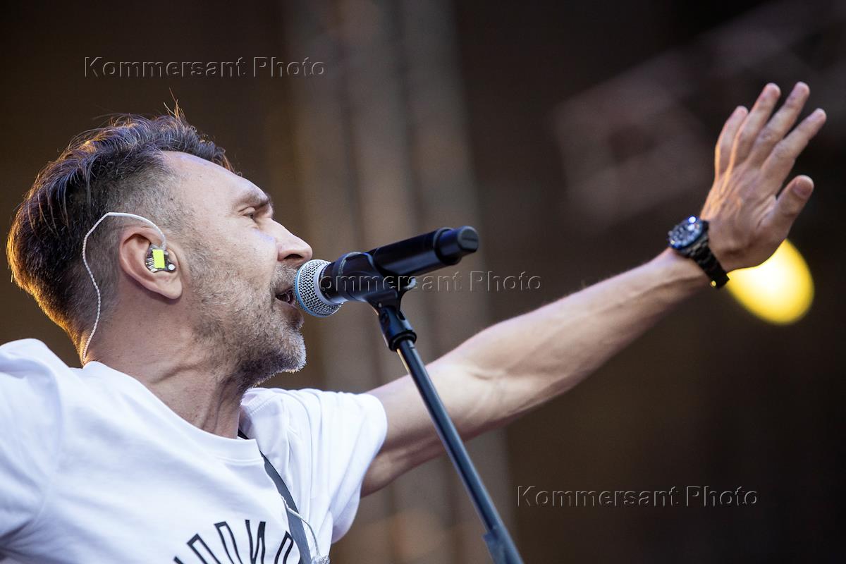 Первый концерт группы "Ленинград" в турне по стадионам, где проходил Чемпионат мира по футболу 2018. Солист группы "Ленинград" Сергей Шнуров во время концерта на стадионе "Арена Калининград".