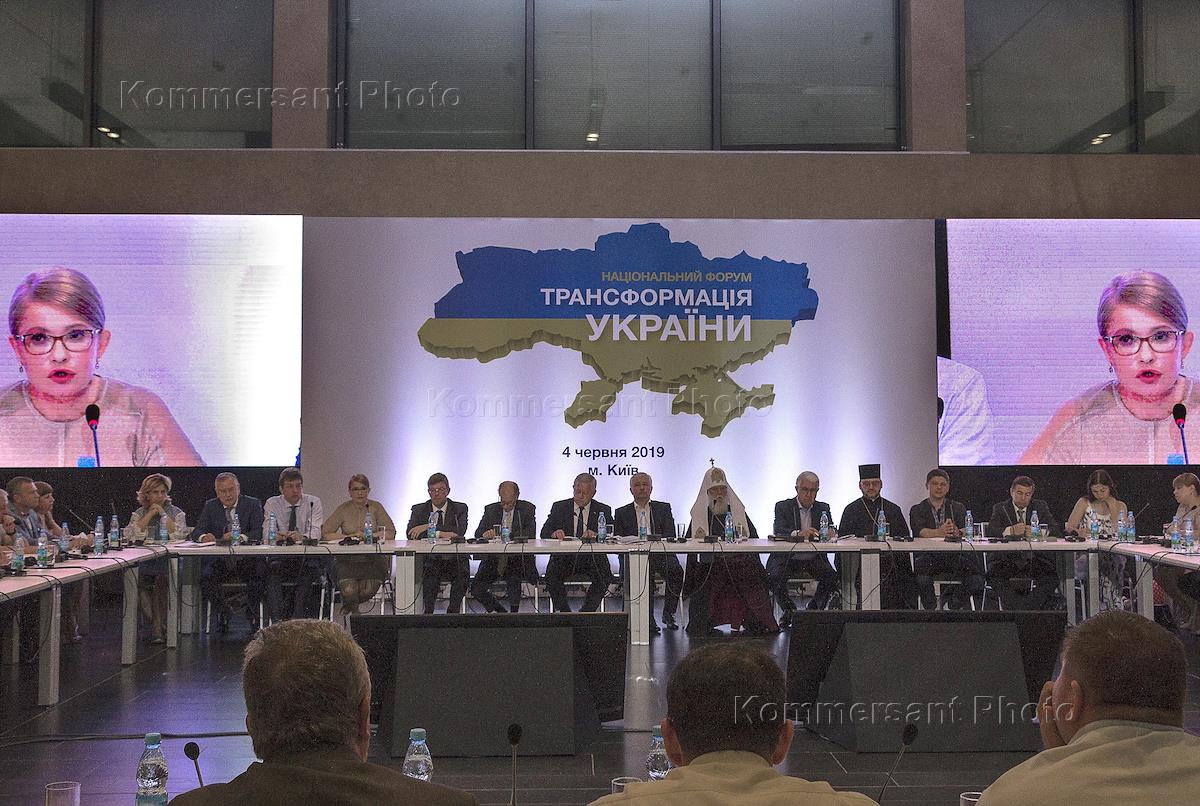 Национальный форум "Трансформация Украины" прошел в национальном спортивном комплексе "Олимпийский". Лидер партии "Батькивщина" Юлия Тимошенко (в центре) во время форума.