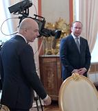Первый заместитель председателя Правительства России - министр финансов России Антон Силуанов (слева) и руководитель администрации президента России Антон Вайно (справа) перед началом переговоров президента России Владимира Путина и председателя КНР Си Цзиньпина. Переговоры прошли в Кремле.