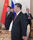 Председатель КНР Си Цзиньпин перед началом переговоров с президентом России Владимиром Путиным в Кремле.