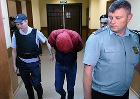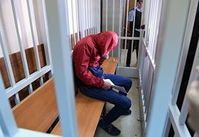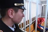 Обвиняемый по делу об убийстве бойца спецназа Никиты Белянкина во время заседания Красногорского городского суда.