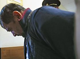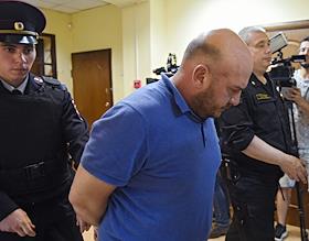 Обвиняемый по делу об убийстве бойца спецназа Никиты Белянкина Сергей Ходжаян во время заседания Красногорского городского суда.
