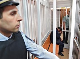 Обвиняемый по делу об убийстве бойца спецназа Никиты Белянкина Сергей Ходжаян (слева) во время заседания Красногорского городского суда.
