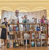 Церемония объявления лауреатов национальной литературной премии "Большая книга" прошла на литературном обеде в демонстрационном зале ГУМа в рамках книжного фестиваля "Красная площадь-2019". Справа налево: писатель Вячеслав Ставецкий, поэт Линор Горалик, писатель Гузель Яхина, писатель Григорий Служитель, писательСухбат Афлатуни во время церемонии.