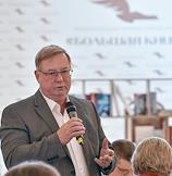 Церемония объявления лауреатов национальной литературной премии "Большая книга" прошла на литературном обеде в демонстрационном зале ГУМа в рамках книжного фестиваля "Красная площадь-2019". Председатель Совета экспертов премии, писатель Михаил Бутов (слева) во время церемонии.