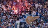 Чемпионат России по футболу 2018-2019. Матч между командами "Ростов" и "Зенит" (санкт-Петербург) на стадионе "Ростов Арена". Болельщики команды "Зенит" на зрительской трибуне во время матча.