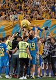 Чемпионат России по футболу 2018-2019. Матч между командами "Ростов" и "Зенит" (Cанкт-Петербург) на стадионе "Ростов Арена". Игрок команды "Ростов" Тимофей Калачев (в центре) прощается с болельщиками после окончания матча.