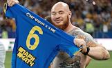 Чемпионат России по футболу 2018-2019. Матч между командами "Ростов" и "Зенит" (Cанкт-Петербург) на стадионе "Ростов Арена". Болельщик с майкой игрока команды "Ростов" Рагнара Сигурдссона после окончания матча.
