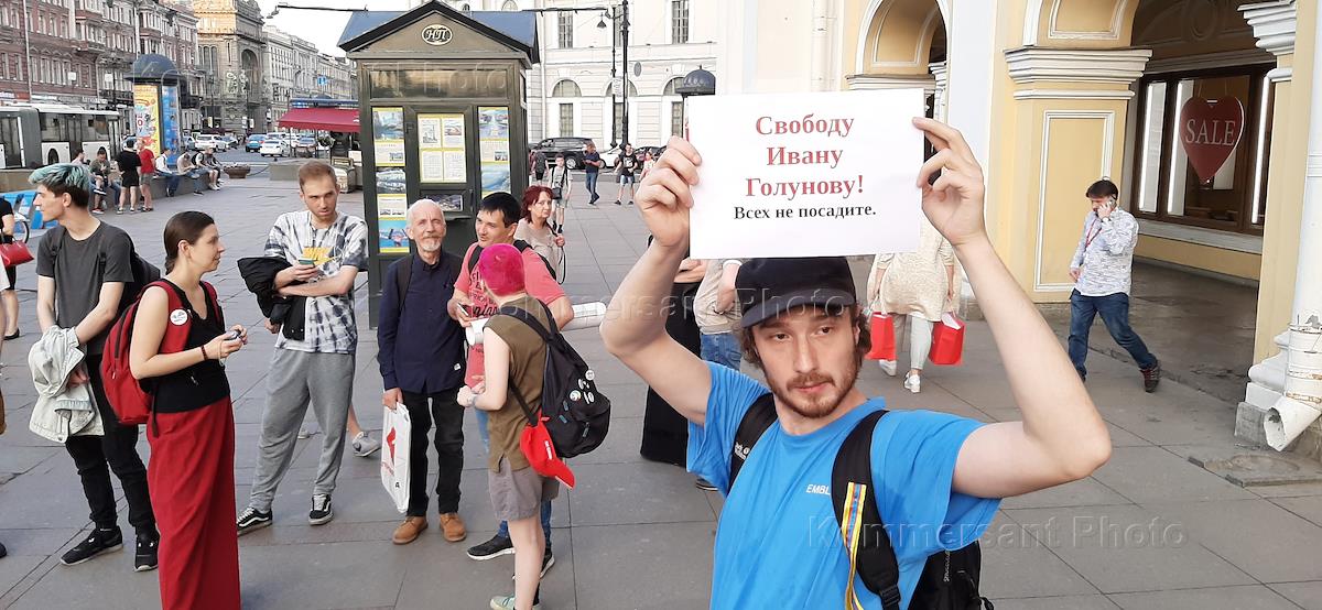 Пикеты в защиту журналиста "Медузы" Ивана Голунова возле Гостиного двора на Невском проспекте