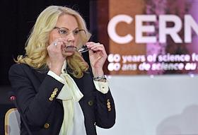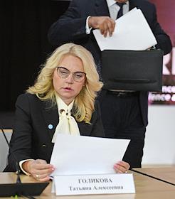 Рабочая поездка председателя правительства России Дмитрия Медведева в Женеву. Встреча председателя правительства России Дмитрия Медведева с российскими учеными, участвующими в экспериментах ЦЕРН в Европейской организации по ядерным исследованиям (ЦЕРН). Заместитель председателя правительства России Татьяна Голикова во время встречи.