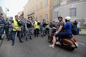 Марш в поддержку журналиста издания "Медуза" Ивана Голунова, против которого возбудили уголовное дело о сбыте наркотиков. Сотрудники полиции во время марша на Страстном бульваре.