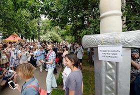 Марш в поддержку журналиста издания "Медуза" Ивана Голунова, против которого возбудили уголовное дело о сбыте наркотиков. Участники марша на Чистых прудах.