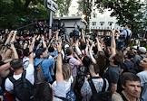 Журналисты во время выхода корреспондента интернет-издания "Медуза" Ивана Голунова из здания главного следственного управления МВД по Москве после снятия с него всех обвинений по делу о покушении на сбыт наркотических веществ.