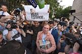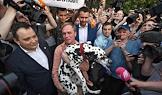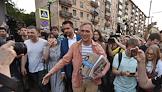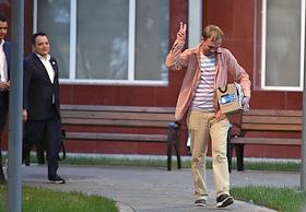 Корреспондент интернет-издания "Медуза" Иван Голунов вышел из здания главного следственного управления МВД по Москве после снятия с него всех обвинений по делу о покушении на сбыт наркотических веществ.