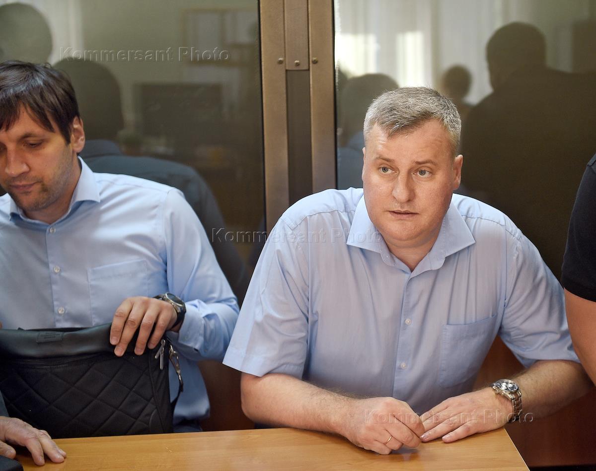 Рассмотрение уголовного дела в отношении отстраненного от должности начальника управления пожарно-спасательных сил ГУ МЧС по Москве Дмитрия Ширлина, обвиняемого в халатности при тушении пожара на складе на востоке столицы в 2016 году. Начальник управления пожарно-спасательных сил ГУ МЧС по Москве Дмитрий Ширлин (справа) во время заседания Преображенского районного суда.