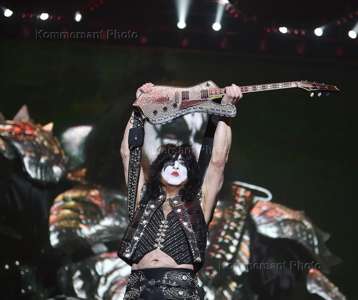 Концерт группы KISS в спортивном комплексе "ВТБ Арена". Вокалист и ритм-гитарист группы Пол Стэнли во время концерта.