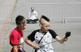 Жанровая фотография. Мужчина в позе лотоса сидит на асфальте за металлическим заграждением.