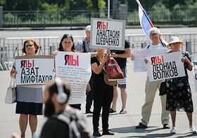 Митинг против политических репрессий, организованный либертарианской партией, прошел на площади Ленина. Участники во время митинга.