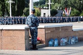 Жанровая фотография. Курсанты института ФСИН во время репетиции выпускного на Адмиралтейской площади.