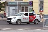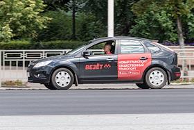 Жанровая фотография. Автомобиль такси компании "Везет" на дороге города..