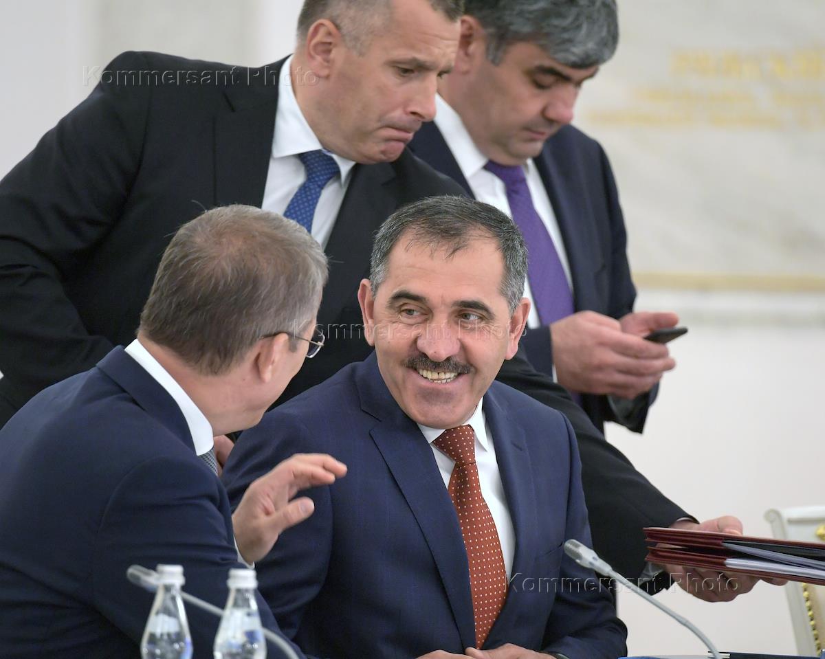 Заседание Госсовета по вопросам развития сети автомобильных дорог и обеспечения безопасности дорожного движения в Кремле. Президент Республики Ингушетия Юнус-Бек Евкуров (второй справа) перед началом заседания.