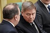 Заседание Совета Федерации (СФ) России. Представитель в СФ России от исполнительного органа государственной власти Белгородской области Николай Рыжков (справа) и представитель в СФ России от законодательного (представительного) органа государственной власти Белгородской области Иван Кулабухов (слева) перед началом заседания.