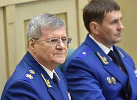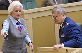 Пленарное заседание Совета Федерации (СФ) России. Генеральный прокурор России Юрий Чайка (справа) перед началом заседания.