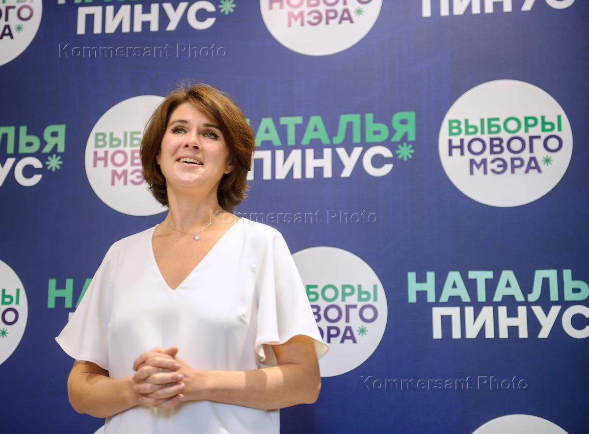 Кандидат на выборах мэра Новосибирска Наталья Пинус во время открытия предвыборного штаба.