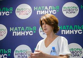 Кандидат на выборах мэра Новосибирска Наталья Пинус во время открытия предвыборного штаба.