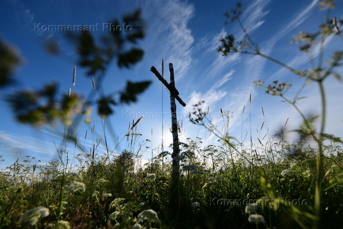 Деревня Кирьясало- столица республики Северная Ингрия в 1919-1920 годах. Деревянный крест на месте деревни в память о республике.