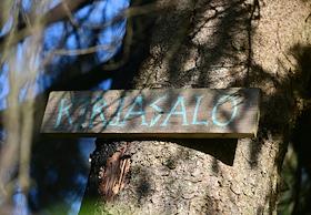 Деревня Кирьясало- столица республики Северная Ингрия в 1919-1920 годах. Указатель деревни на дереве на финском языке.