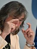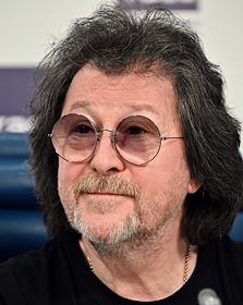 Пресс-конференция, посвященная презентации автобиографии группы "Машина времени", в информационном агентстве ТАСС. Музыкант, участник группы "Машина времени" Андрей Макаревич во время пресс-конференции.