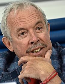 Пресс-конференция, посвященная презентации автобиографии группы "Машина времени", в информационном агентстве ТАСС. Музыкальный журналист, писатель Михаил Марголис во время пресс-конференции.