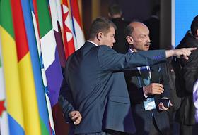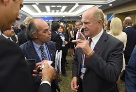 II Международный форум "Развитие парламентаризма" в Центре международной торговли (ЦМТ). Лидер КПРФ, член комитета Государственной думы России по делам Содружества Независимых Государств, евразийской интеграции и связям с соотечественниками Геннадий Зюганов (справа) во время форума.