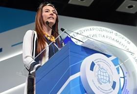 II Международный форум "Развитие парламентаризма" в Центре международной торговли (ЦМТ). Председатель Межпарламентского союза Габриэла Куэвас Баррон во время выступления на форуме.
