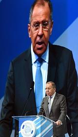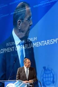 II Международный форум "Развитие парламентаризма" в Центре международной торговли (ЦМТ). Министр иностранных дел России Сергей Лавров во время выступления на форуме.