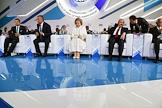 II Международный форум "Развитие парламентаризма" в Центре международной торговли (ЦМТ). Слева направо: председатель Национального совета Словакии Андрей Данко, председатель Государственной думы России Вячеслав Володин и председатель Совета Федерации России Валентина Матвиенко во время выступления председателя Межпарламентского союза Габриэлы Куэвас Баррон на форуме.
