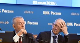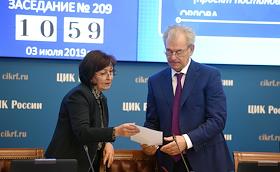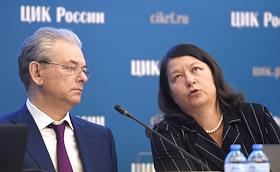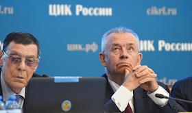 Заседание Центральной избирательной комиссии (ЦИК) России. Заместитель председателя ЦИК России Николай Булаев (слева) и секретарь ЦИК России Майя Гришина (справа) во время заседания.