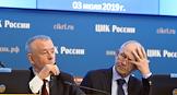 Заседание Центральной избирательной комиссии (ЦИК) России. Члены ЦИК России Борис Эбзеев (слева) и Евгений Колюшин (справа) во время заседания.