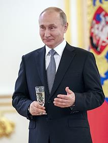 Церемония вручения верительных грамот послами иностранных государств в Александровском зале Большого Кремлевского дворца. Президент России Владимир Путин во время церемонии.