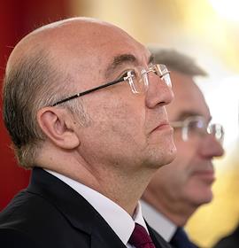 Церемония вручения верительных грамот послами иностранных государств в Александровском зале Большого Кремлевского дворца. Посол Республики Кипр Андреас Зинонос (справа) во время церемонии.