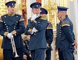 Церемония вручения верительных грамот послами иностранных государств в Александровском зале Большого Кремлевского дворца. Музыканты военного оркестра перед началом церемонии.