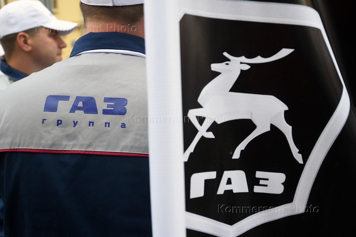 Сотрудники автомобильного завода "ГАЗ", принадлежащего Олегу Дерипаске, во время акции протеста против санкций рядом с посольством США в Москве.