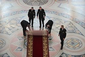 Панихида по погибшим в Баренцевом море морякам-подводникам прошла в главном храме российских моряков - Кронштадтском морском соборе святителя Николая Чудотворца. Военнослужащие перед началом панихиды.