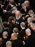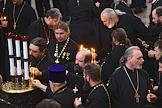 Панихида по погибшим в Баренцевом море морякам-подводникам прошла в главном храме российских моряков - Кронштадтском морском соборе святителя Николая Чудотворца. Священнослужители во время панихиды.