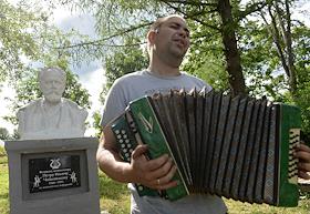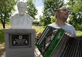 Жизнь села Алферьево. Житель села Иван у памятника композитору Петру Чайковскому.