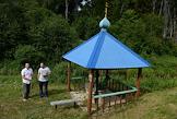 Жизнь села Алферьево. Краевед Сергей Потанин (слева) и местный житель Иван (справа) у святого источника на берегу реки Санебы.
