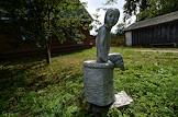 Жизнь села Алферьево. Уличная скульптура девочки, сидящей на коробе.