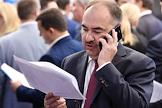 Ежегодная политическая конференция партии "Единая Россия" в формате совместного заседания Высшего и Генерального советов "Единой России". Председатель правления Пенсионного фонда России Антон Дроздов перед началом конференции.